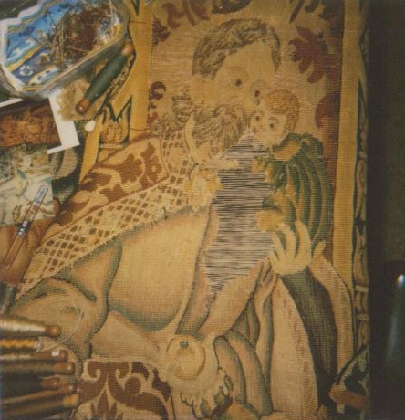 Chaque tapisserie ne requière pas le même degré de réparation. Certaines ne demandent que le minimum, d'autres attendent beaucoup plus d'attention. Ceci n'a rien à voir avec l'état de la tenture, mais plus avec l'esprit qui s'en dégage, avec la finesse du tissage sans doute (cela peut aller de 3 à 4 chaînes au cm jusqu'à 10 ou 11 et plus.) avec l'époque aussi. Une tapisserie du XV° sera moins exigeante qu'une complexe tenture du XVIII° où la finesse du dessin et le nombre de couleurs obligent à une plus grande netteté. Les cartonniers du XVIII° ont voulu en faire des tableaux avec bordures imitant les cadres ; ce qui a provoqué le déclin de la tapisserie.